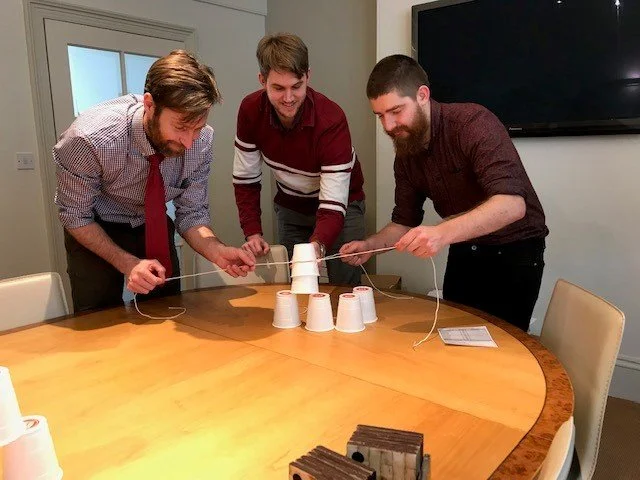 The staff raised £150 through a raffle, bake sale and an enthusiastic game with the aim of building a pyramid of six cups using only an elastic band and string – no touching the cups with hands!