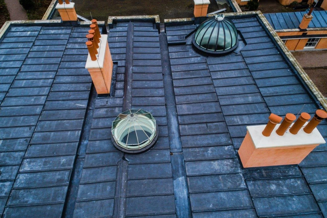 In addition to these works, chimney structures were rebuilt, glazed lanterns refurbished, and parapet walls repaired including new copings. The service range roof was also repaired and re-slated as part of the project.