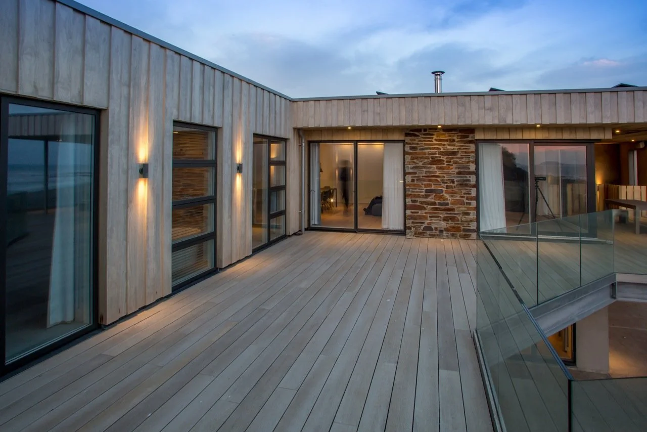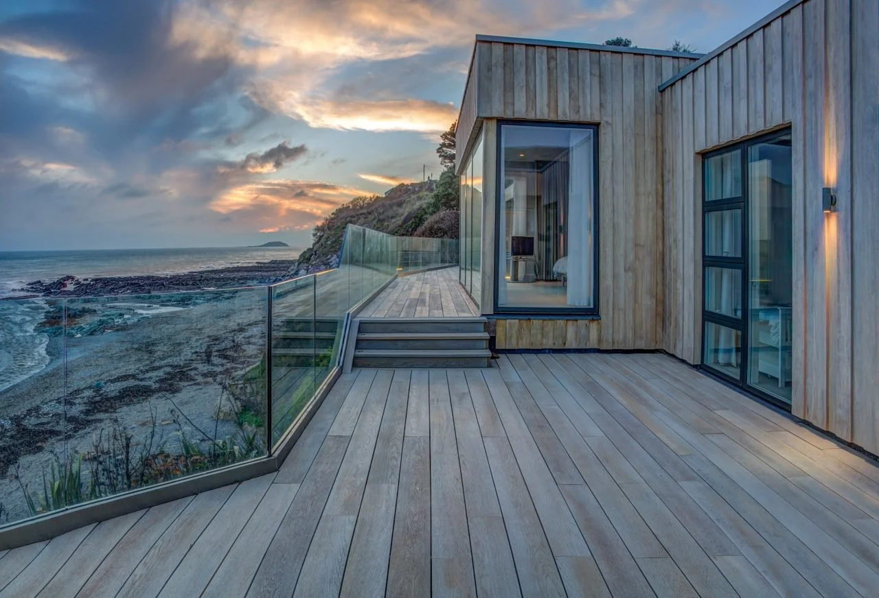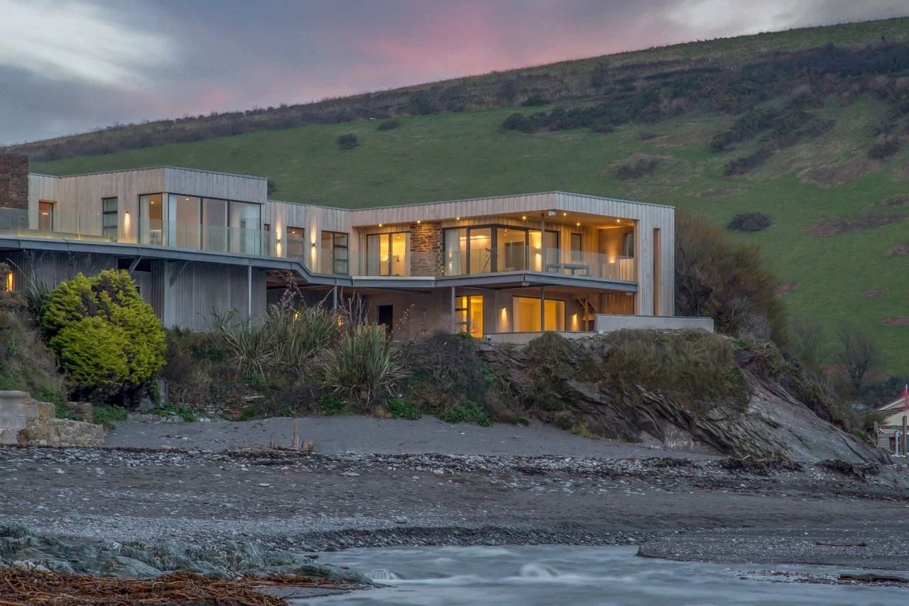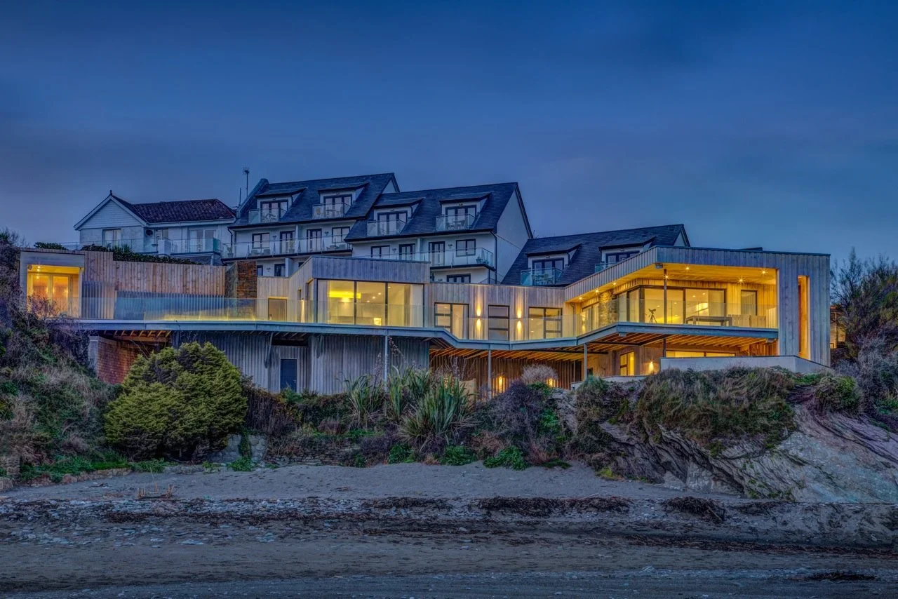 Due to the enclosed nature of the site the property was set down into the cliff. This required a highway supporting retaining wall to the rear and piles to the front to support structure and protect against coastal erosion.