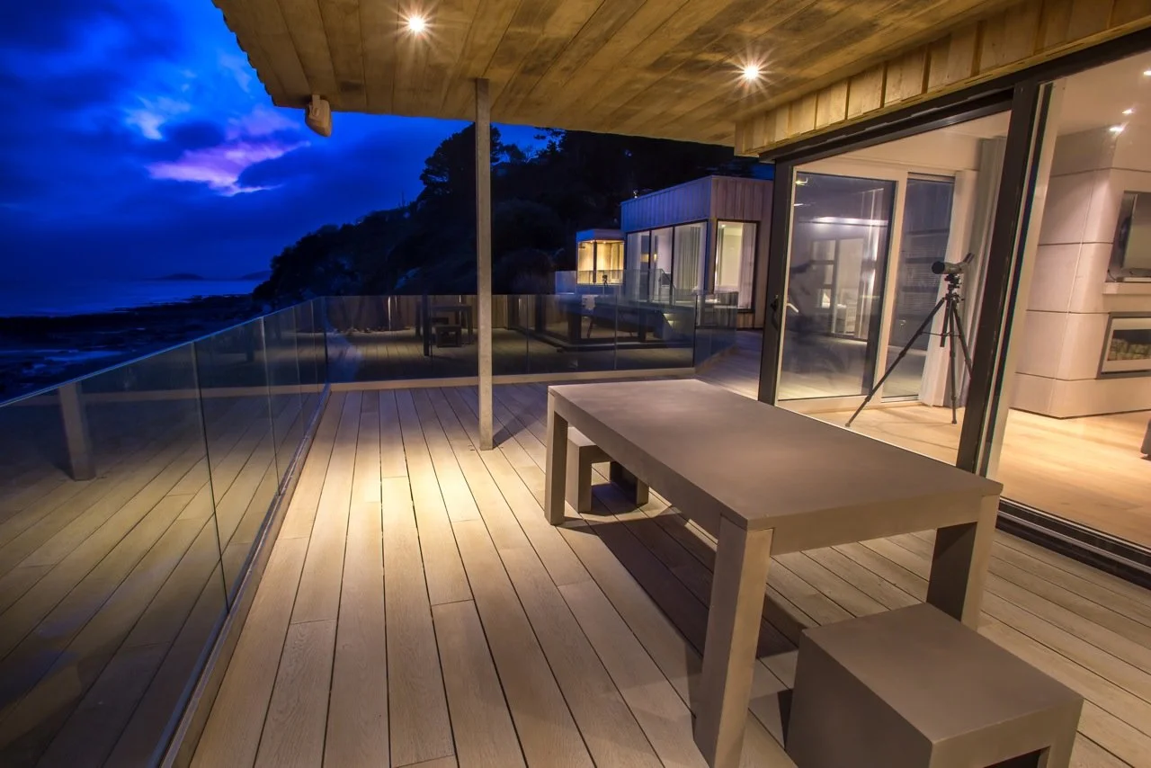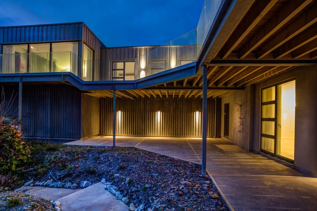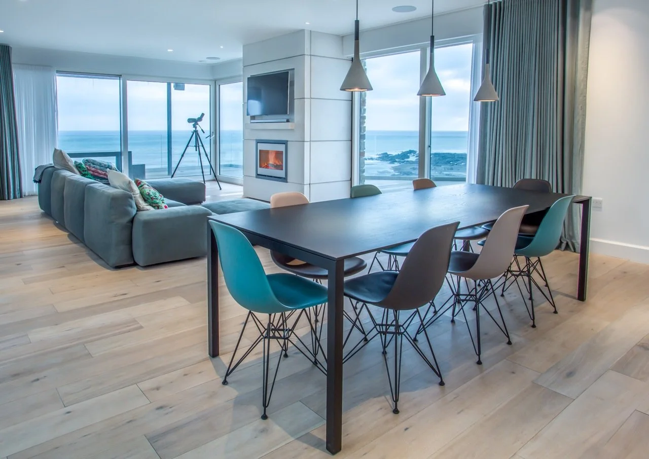 Due to the enclosed nature of the site the property was set down into the cliff. This required a highway supporting retaining wall to the rear and piles to the front to support structure and protect against coastal erosion.